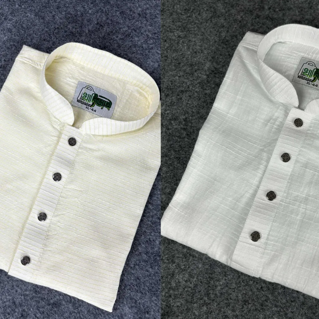 খাদি চিকন স্ট্রাইপ পাঞ্জাবি(সাদা+ক্রিম)