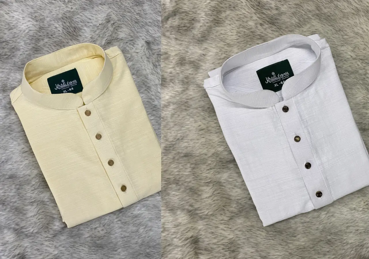 খাদি সলিড পাঞ্জাবি (ক্রিম+সাদা)