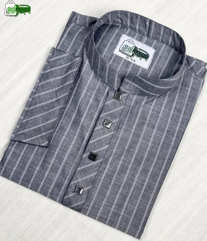 প্রিমিয়াম স্ট্রাইপ পাঞ্জাবি (ডিপ এশ কালার)1
